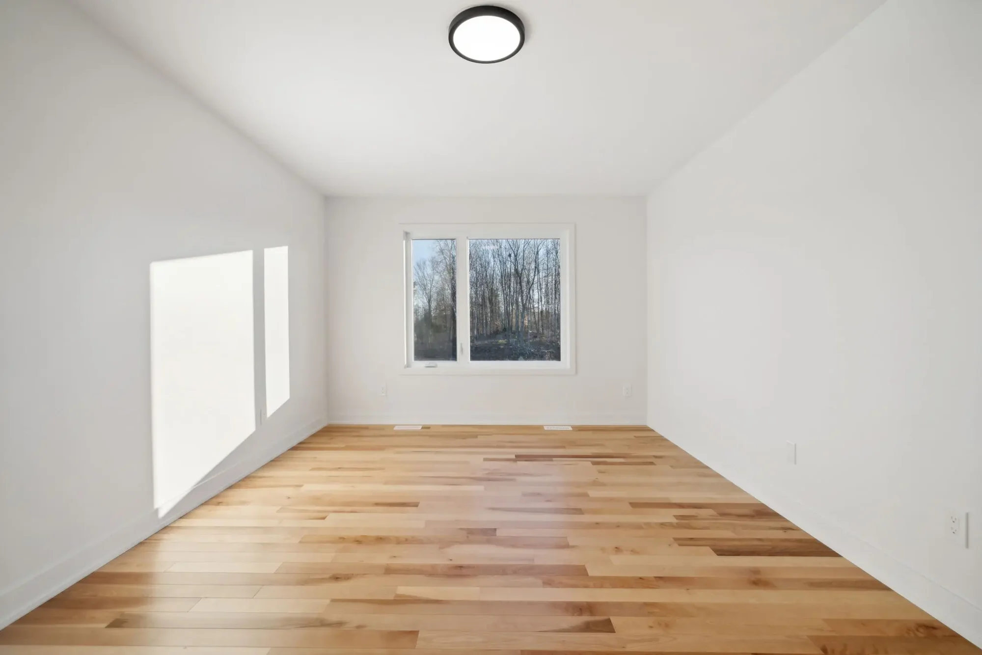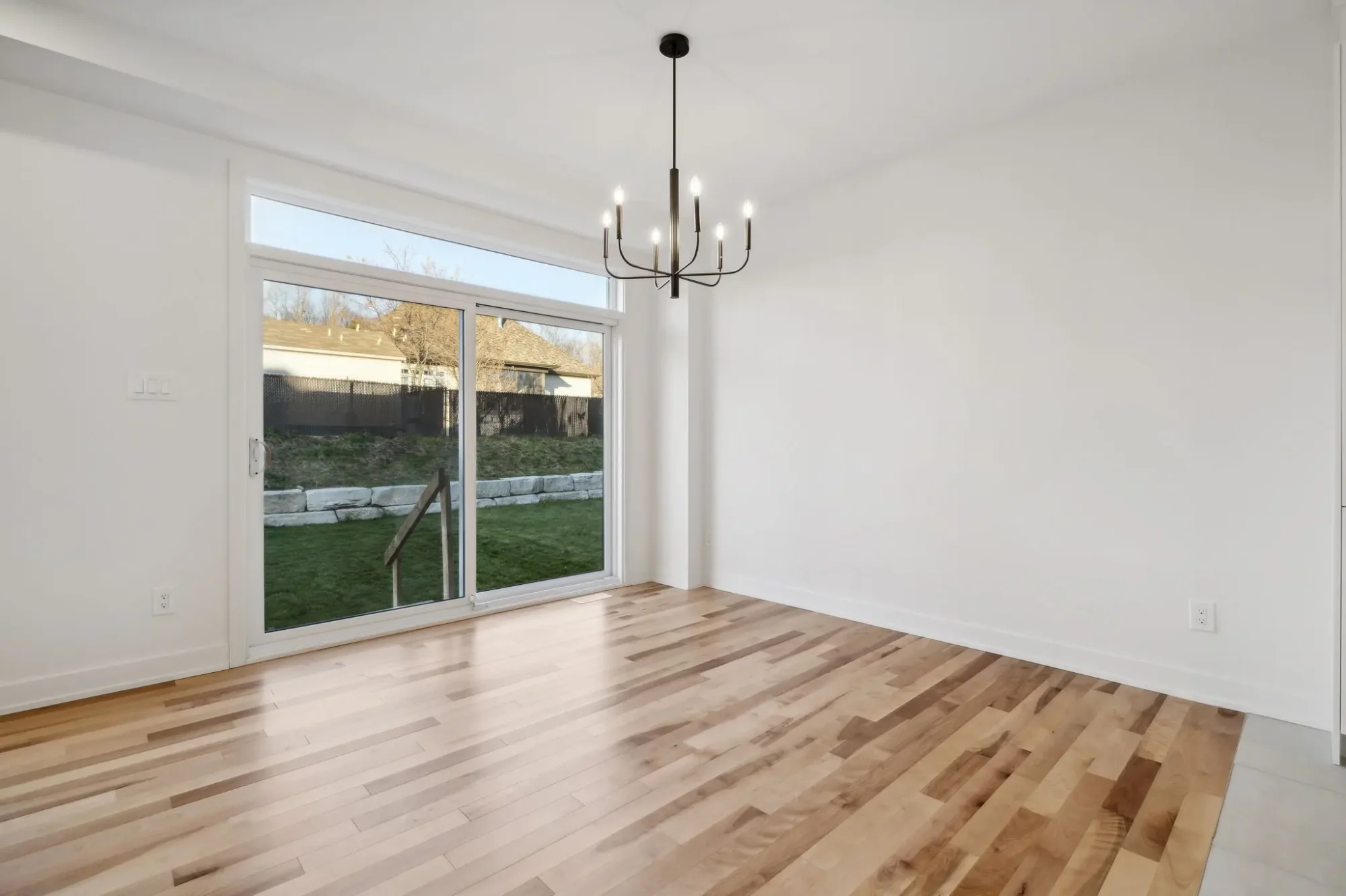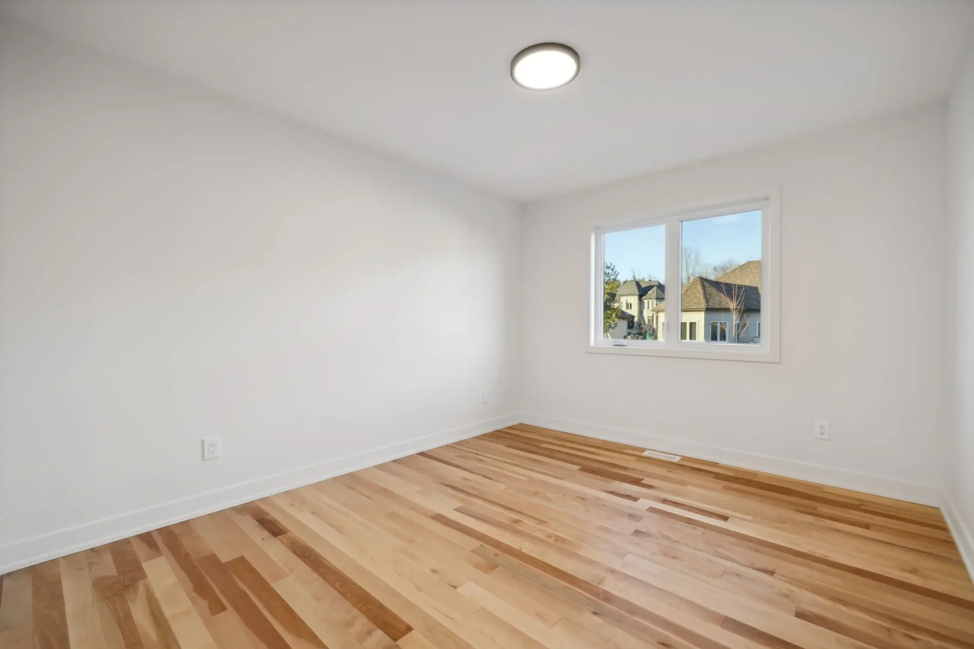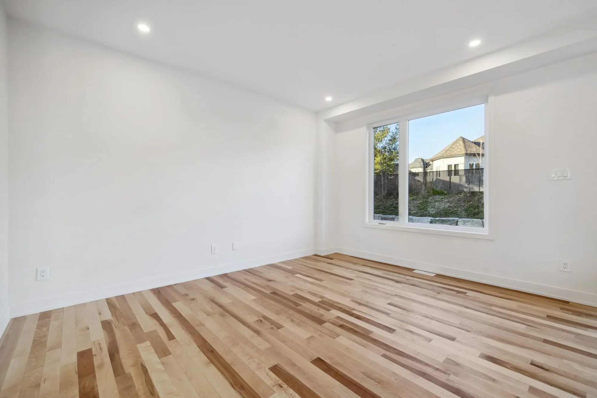 - Bois franc teint et vernis 3-1/4’’ au rez-de-chaussé, incluant les chambres