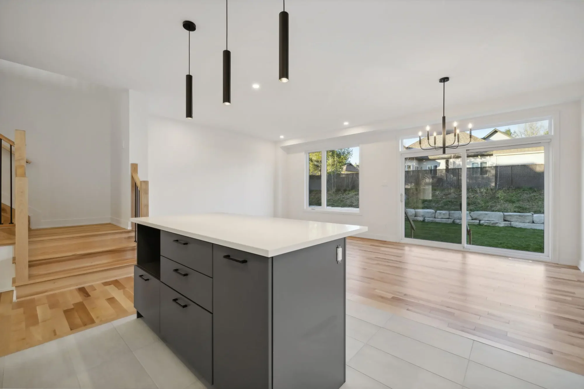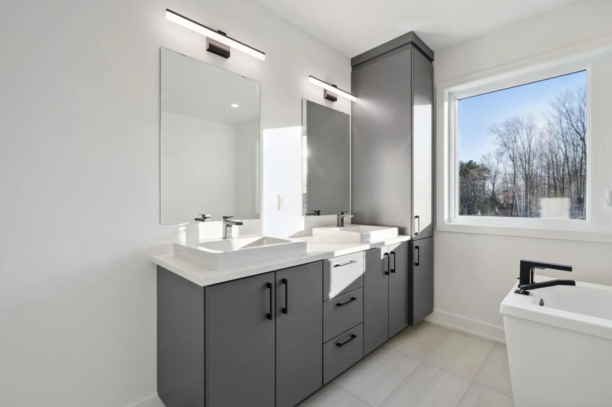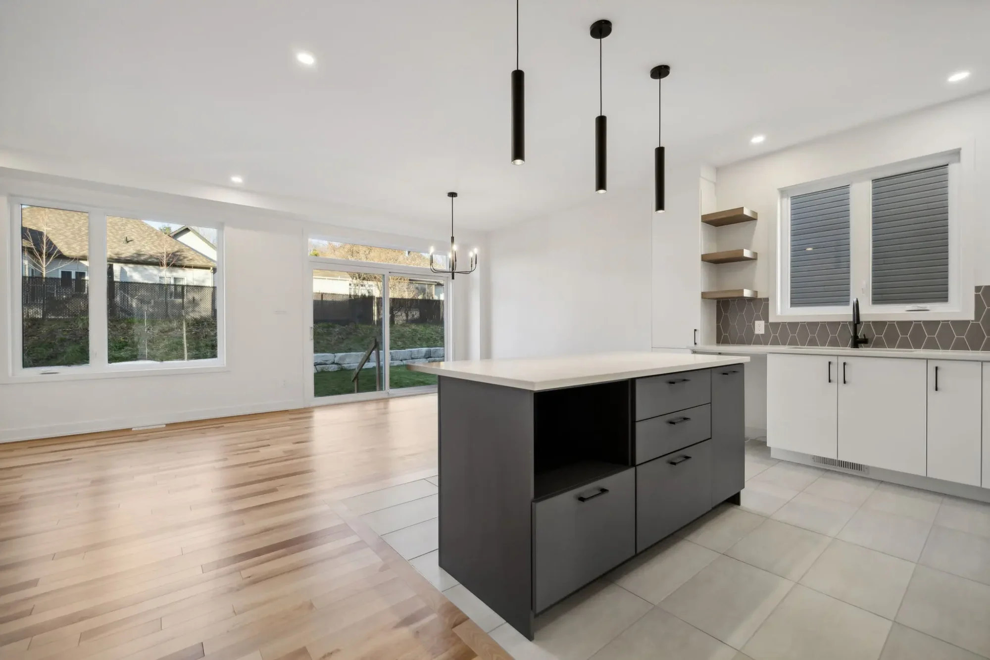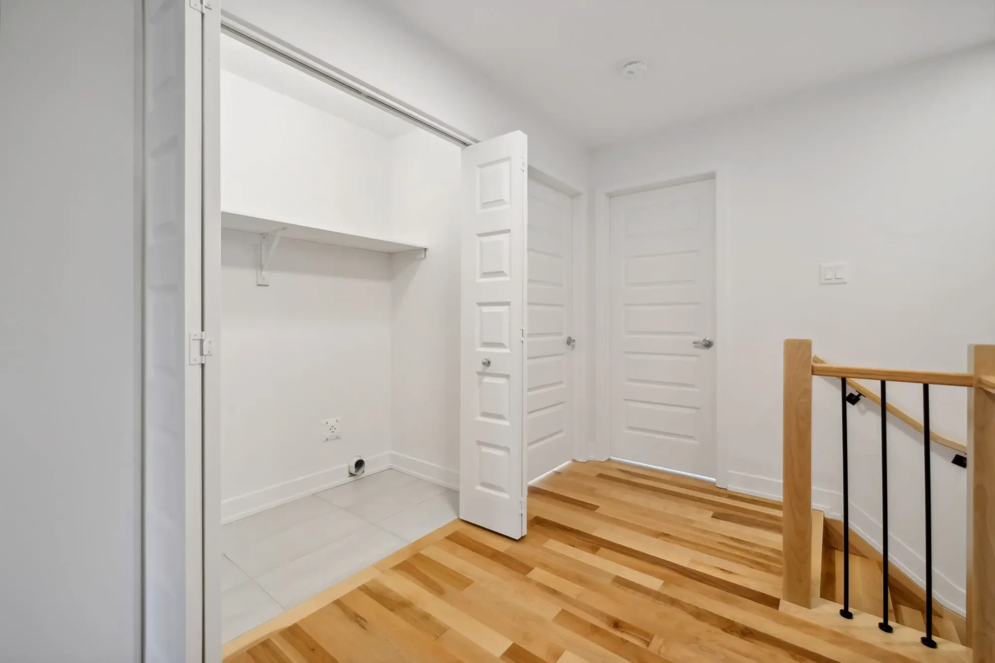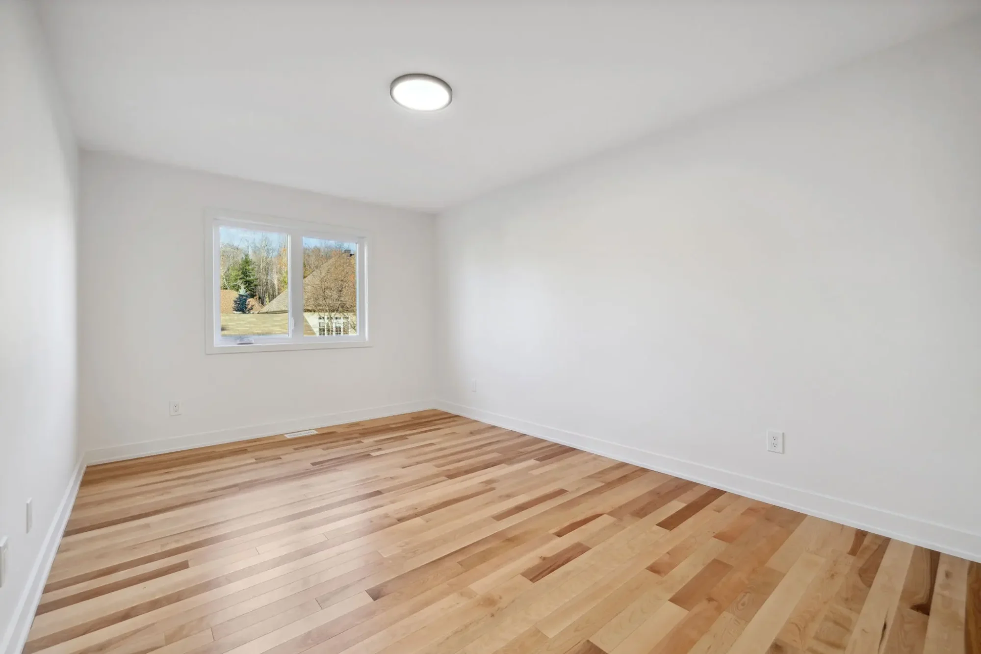 - Bois franc teint et vernis 3-1/4’’ au rez-de-chaussé, incluant les chambres