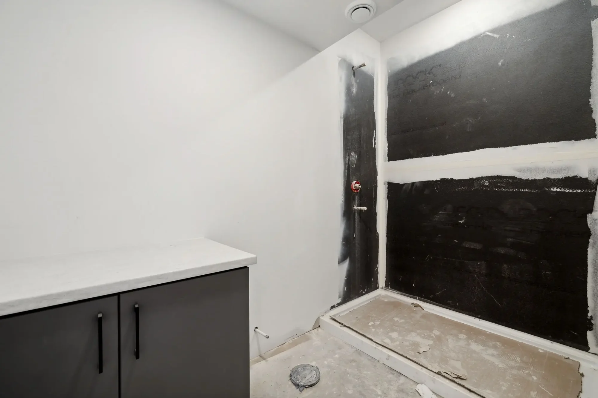 - Douche 48’’ x 48’’ en céramique 24’’ x 12’’ plus rail avec douchette