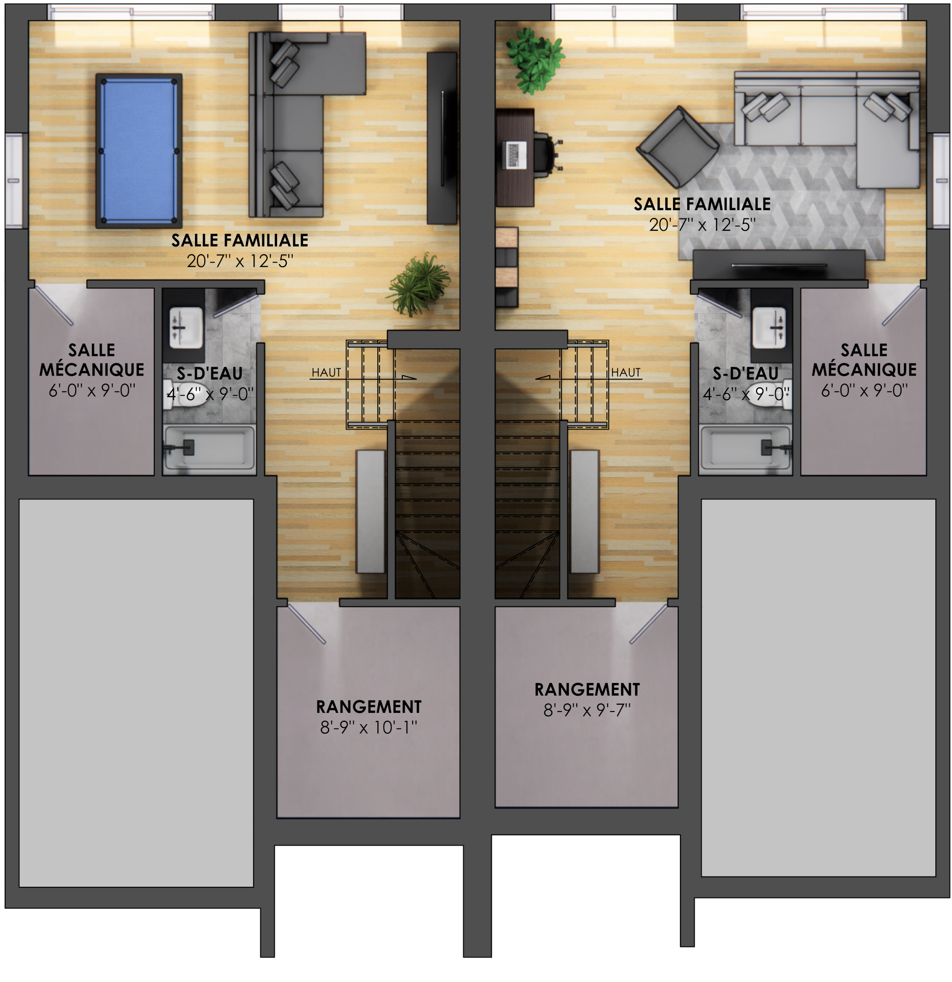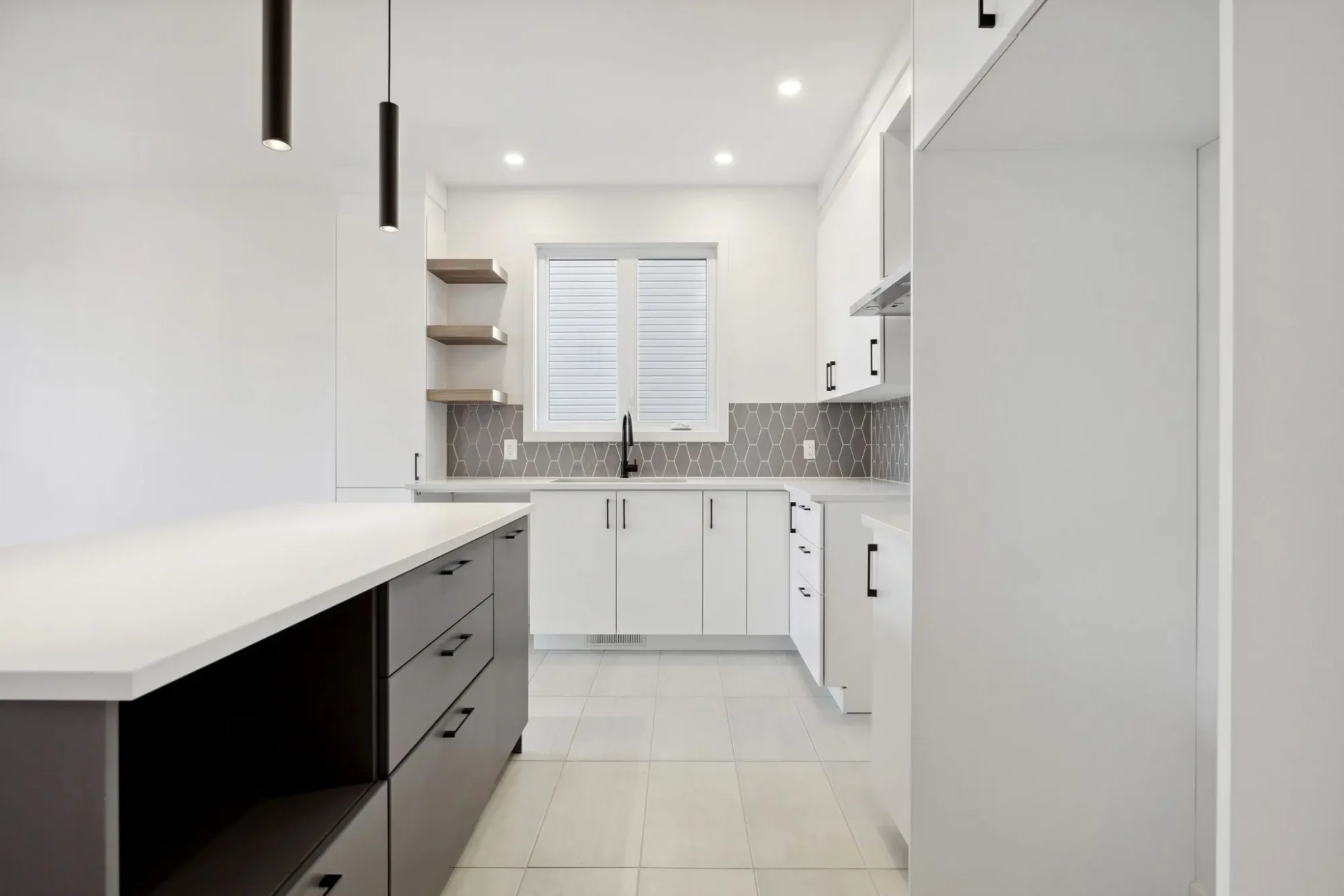 - Céramique 24’’ x 12’’ à l’entrée, cuisine et salle de bain